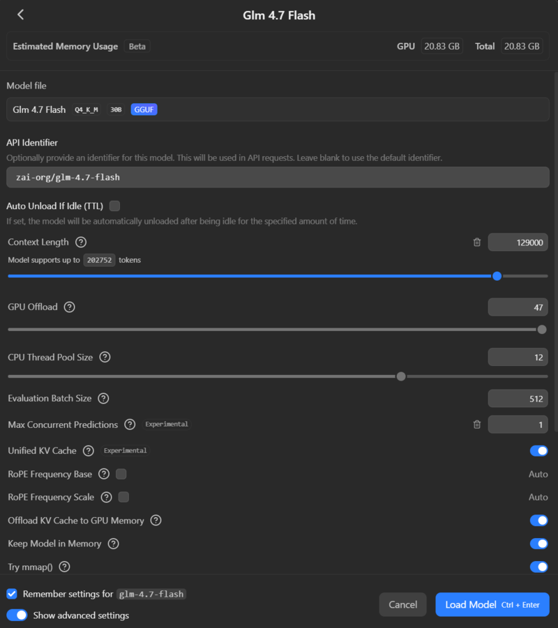 It is crucial to change “Max concurrent predictions” to 1. Otherwise, when the coding tool runs multiple sub-agents, you will run out of VRAM immediately and performance will tank.