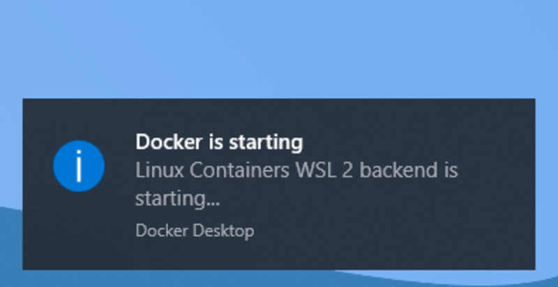 Docker Desktop starting with WSL2 backend toast notification